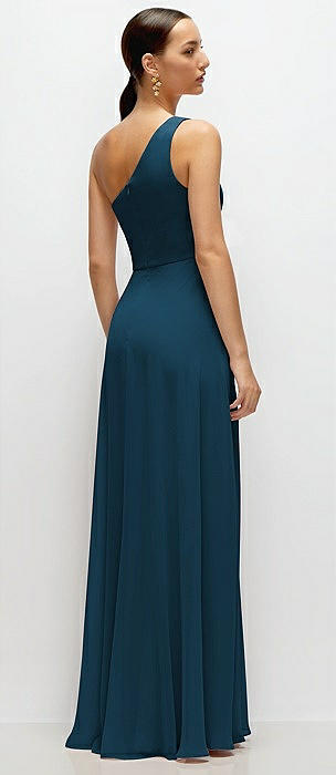 One-Shoulder Chiffon Maxi Dress with Shirred Front Slit in atlantic blue