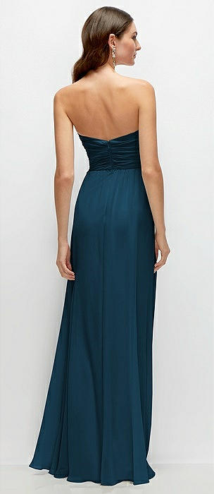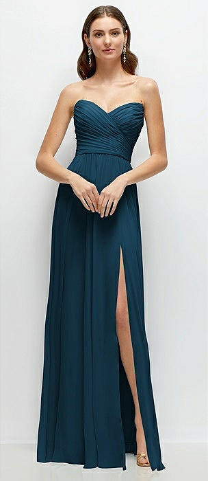 Strapless Pleated Surplice Chiffon Maxi Dress with A-Line Skirt in atlantic blue