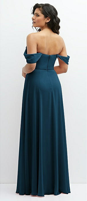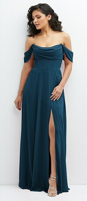 Chiffon Corset Maxi Dress with Removable Off-the-Shoulder Swags in atlantic blue