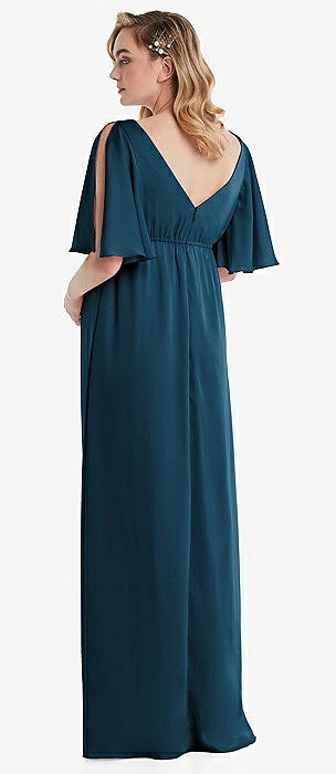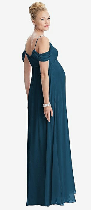 Draped Cold-Shoulder Chiffon Maternity Dress