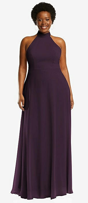 Draped Chiffon Grecian Column Gown with Convertible Straps in aubergine