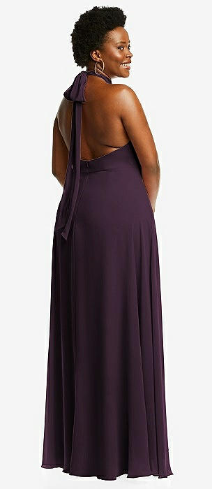 Tie-Back Cutout Trumpet Gown with Front Slit in aubergine