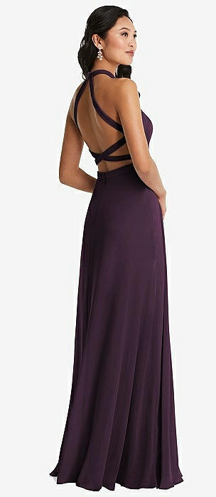 High Neck Halter Backless Maxi Dress in aubergine