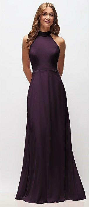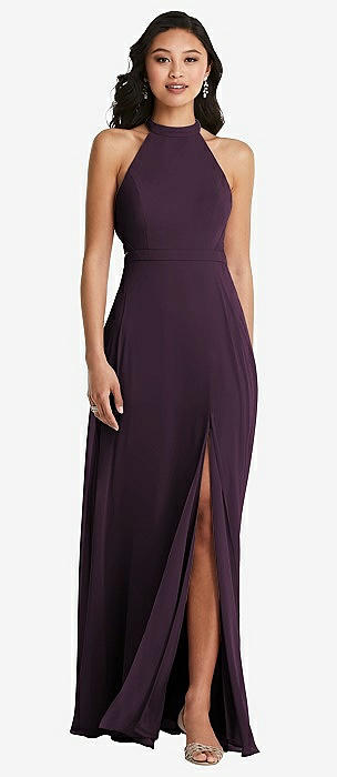 Aubergine High Neck Bridesmaid Dresses