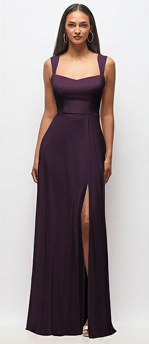 Contoured Wide Strap Sweetheart Maxi Dress in aubergine
