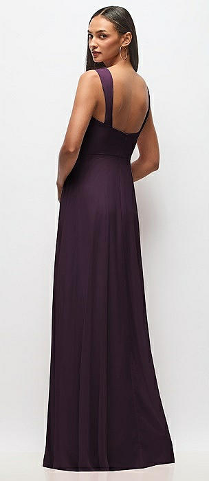 Strapless Pleated Surplice Chiffon Maxi Dress with A-Line Skirt in aubergine