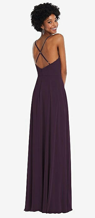 Stand Collar Halter Maxi Dress with Criss Cross Open-Back in aubergine