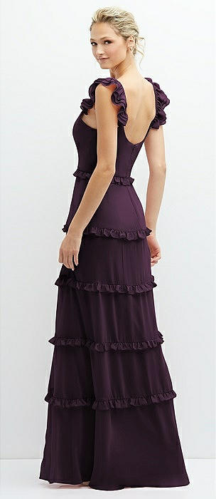 Tiered Chiffon Maxi A-line Dress with Convertible Ruffle Straps in aubergine