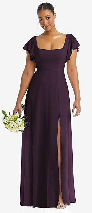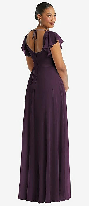 Flutter Sleeve Scoop Open-Back Chiffon Maxi Dress