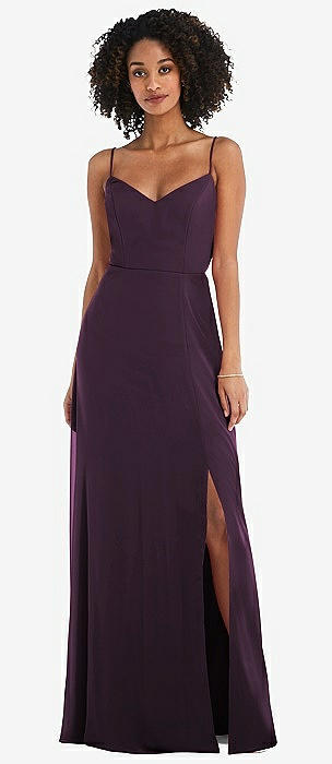 After Six Aubergine Cutout Back Bridesmaid Dresses
