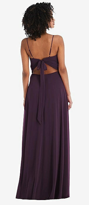 Tie-Back Cutout Maxi Dress with Front Slit in aubergine