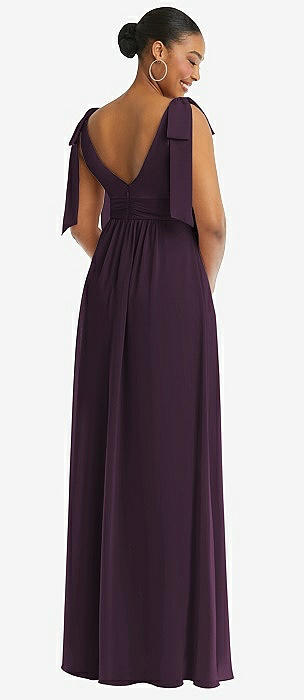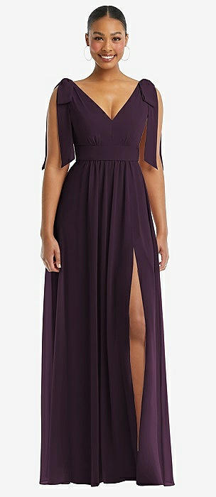 Plunge Neckline Bow Shoulder Empire Waist Chiffon Maxi Dress
