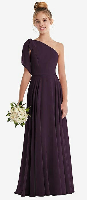 One-Shoulder Scarf Bow Chiffon Junior Bridesmaid Dress