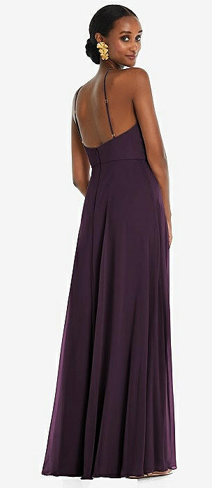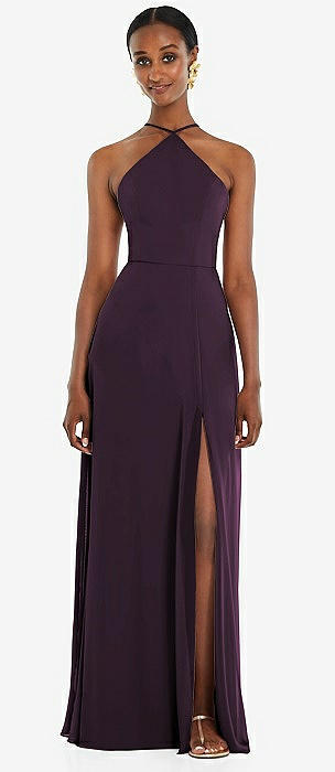 Diamond Halter Maxi Dress with Adjustable Straps in aubergine