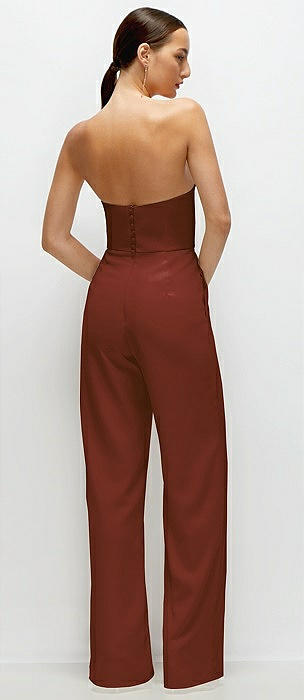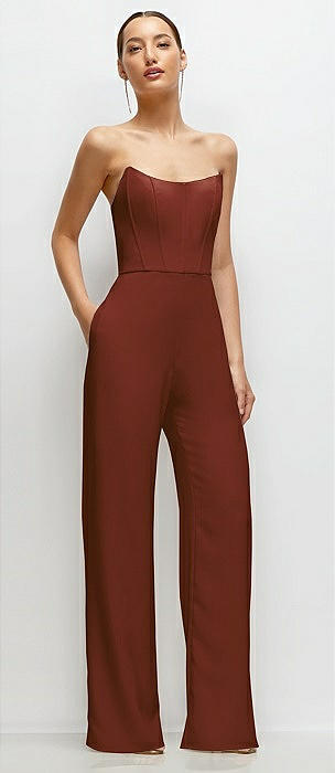 Strapless Cat-Eye Corset Crepe Wedding Jumpsuit in auburn moon