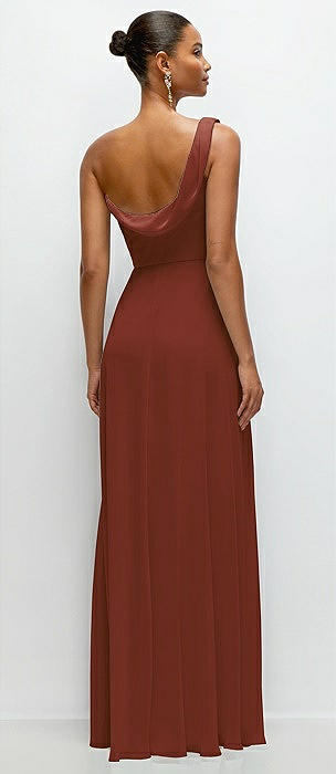 Chiffon One-Shoulder Maxi Dress with Draped Cowl Neckline in auburn moon
