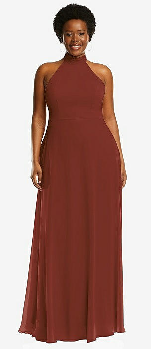 High Neck Halter Backless Maxi Dress in auburn moon