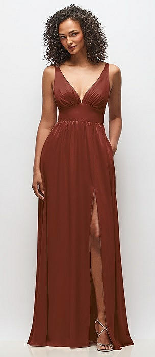 Deep V-Neck Shirred Skirt Maxi Dress with Convertible Straps in auburn moon
