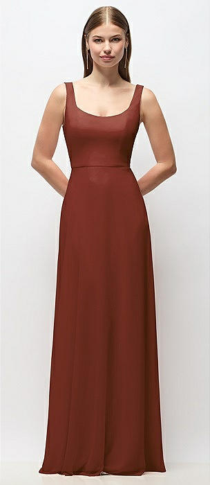Scoop Neck Tank Strap Chiffon Maxi Dress in auburn moon