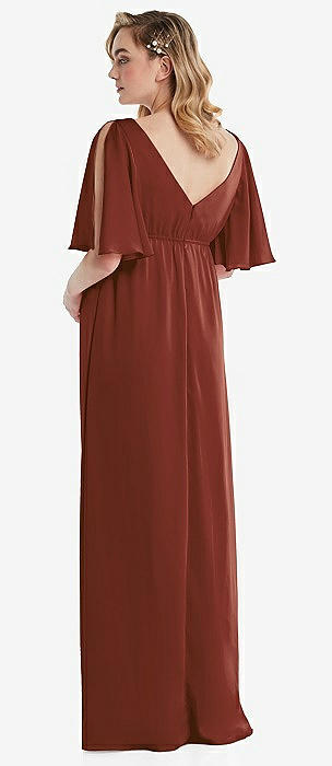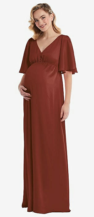 Flutter Bell Sleeve Empire Maternity Dress in auburn moon