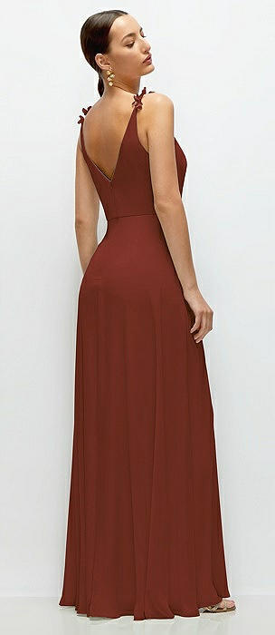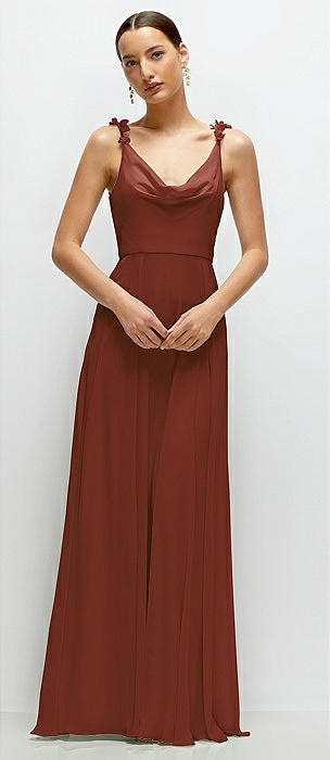 Cowl Neck Chiffon Maxi Dress with Hand-Worked Petal Straps in auburn moon