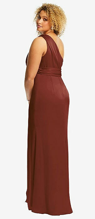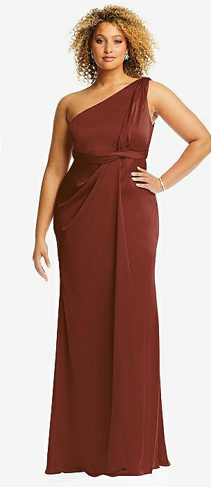 One-Shoulder Draped Twist Empire Waist Trumpet Gown in auburn moon