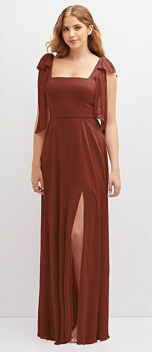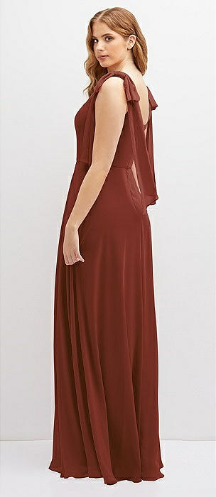 Bow Shoulder Square Neck Chiffon Maxi Dress in auburn moon