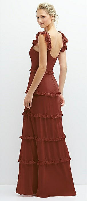 Tiered Chiffon Maxi A-line Dress with Convertible Ruffle Straps in auburn moon