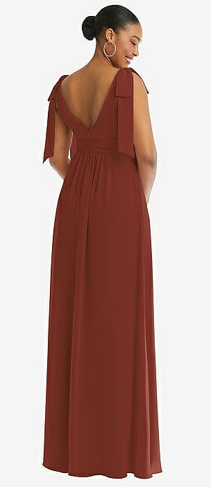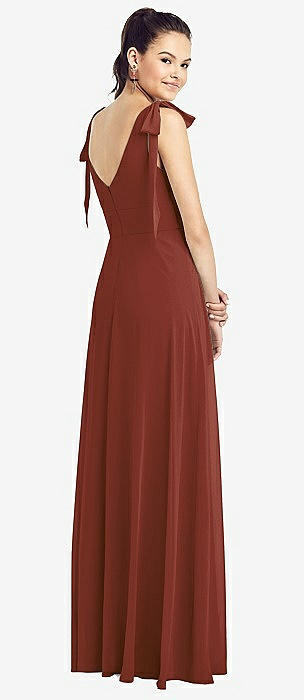 Tie Shoulder Empire Waist Junior Bridesmaid Dress in auburn moon