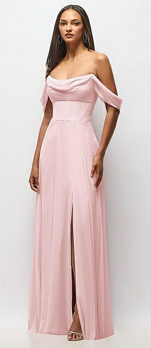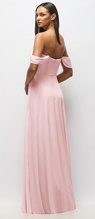 Chiffon Corset Maxi Dress with Removable Off-the-Shoulder Swags in ballet pink