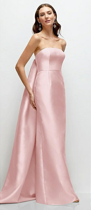 Strapless Satin Column Dress with Removeable Watteau Train in ballet pink