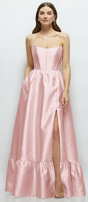 Strapless Cat-Eye Boned Bodice Maxi Dress with Ruffle Hem in ballet pink