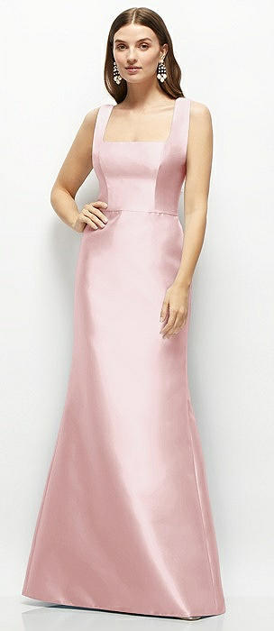 Satin Square Neck Fit and Flare Maxi Dress in ballet pink