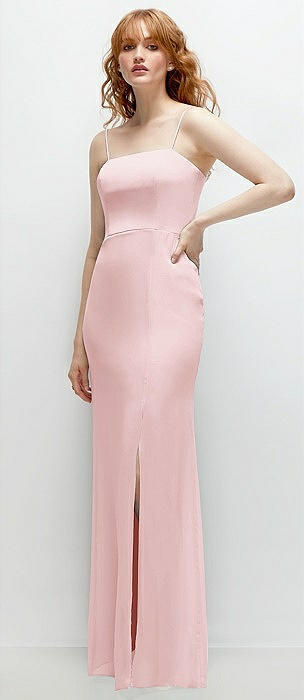 Tie-Back Cutout Trumpet Gown with Front Slit in ballet pink