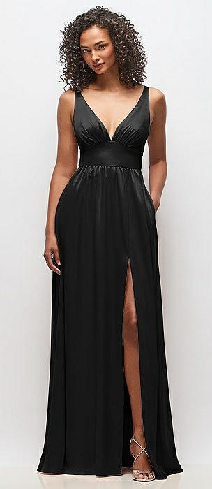 Draped Satin Grecian Column Gown with Convertible Straps in black