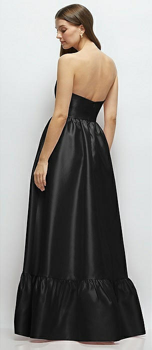 Strapless A-line Satin Gown with Modern Bow Detail in black