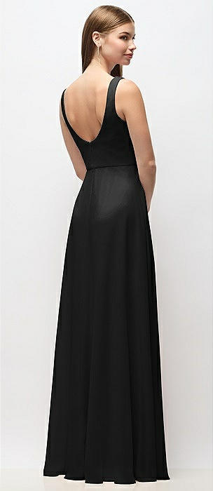 Square Neck Chiffon Maxi Dress with Circle Skirt in black