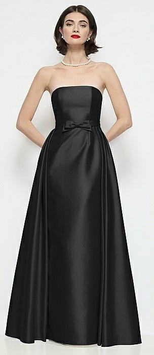 Strapless Bow-Waist Satin Column Dress with Overskirt in black