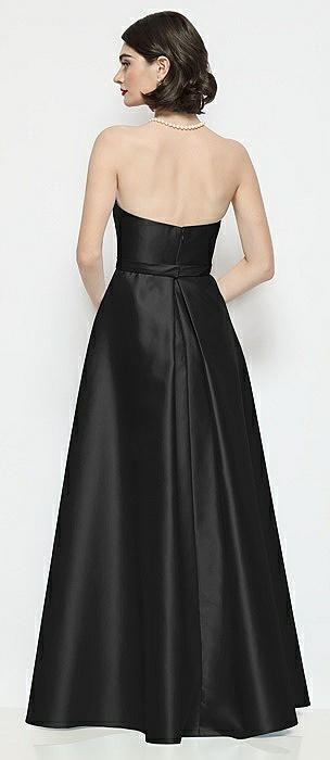 Strapless Bias Cuff Bodice Satin Gown with Pockets in black