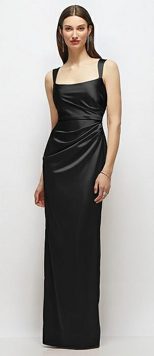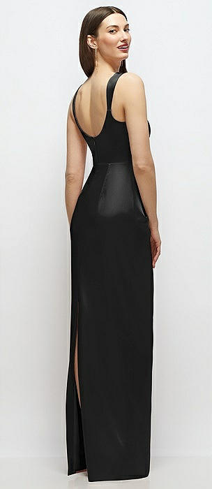 Scoop Neck Draped Column Stretch Satin Maxi Dress in black