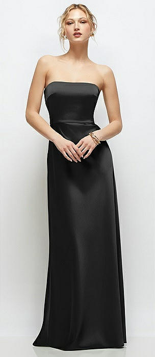 Strapless A-Line Stretch Satin Maxi Dress in black
