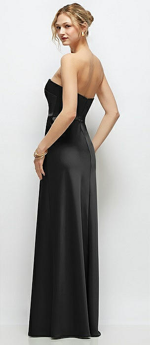 Strapless Satin Column Dress with Removeable Watteau Train in black