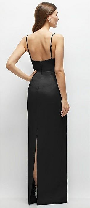 Corset-Style Crepe Column Maxi Dress with Adjustable Straps in black