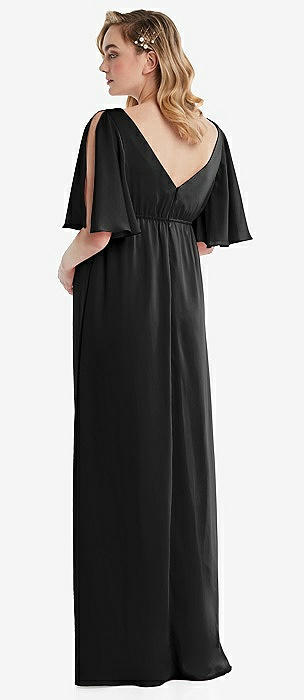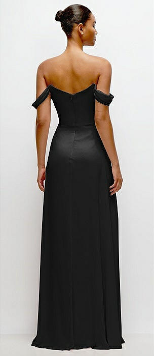 Bow-Shoulder V-Back Chiffon Gown with Front Slit in black