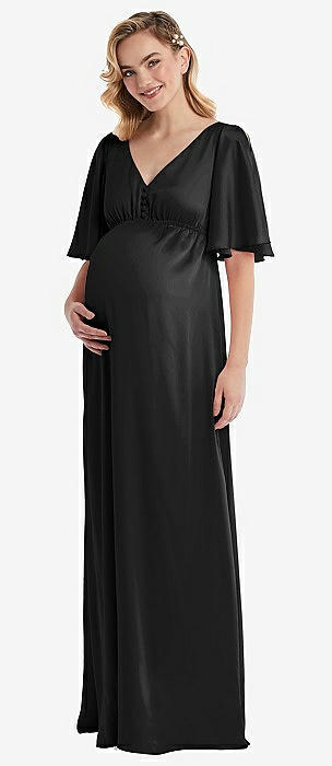 Cap Sleeve Open-Back Trumpet Gown with Front Slit in black