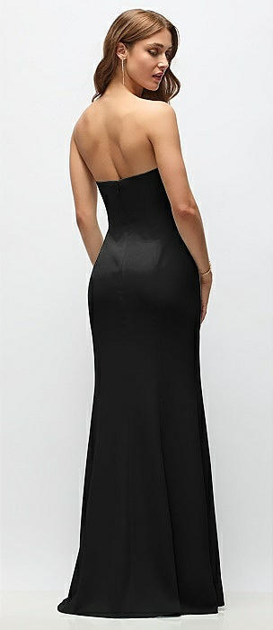 Strapless Fit and Flare Crepe Maxi Dress in black
