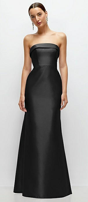 Strapless Cuff Neckline Satin Trumpet Gown in black