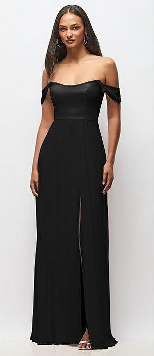 Chiffon Corset Maxi Dress with Removable Off-the-Shoulder Swags in black