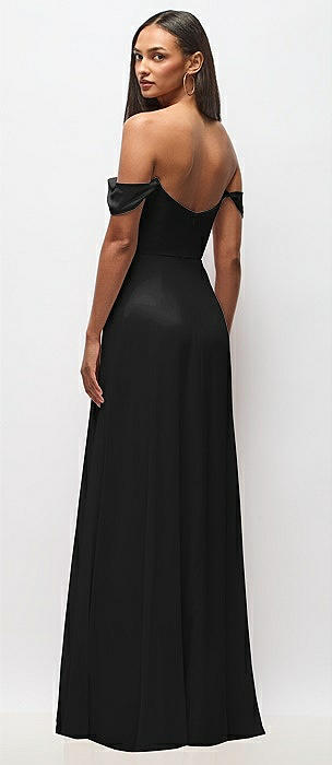 Chiffon Corset Maxi Dress with Removable Off-the-Shoulder Swags in black