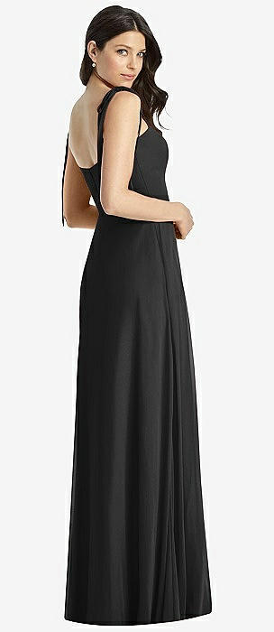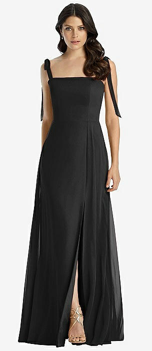 Tie-Shoulder Chiffon Maxi Dress with Front Slit in black